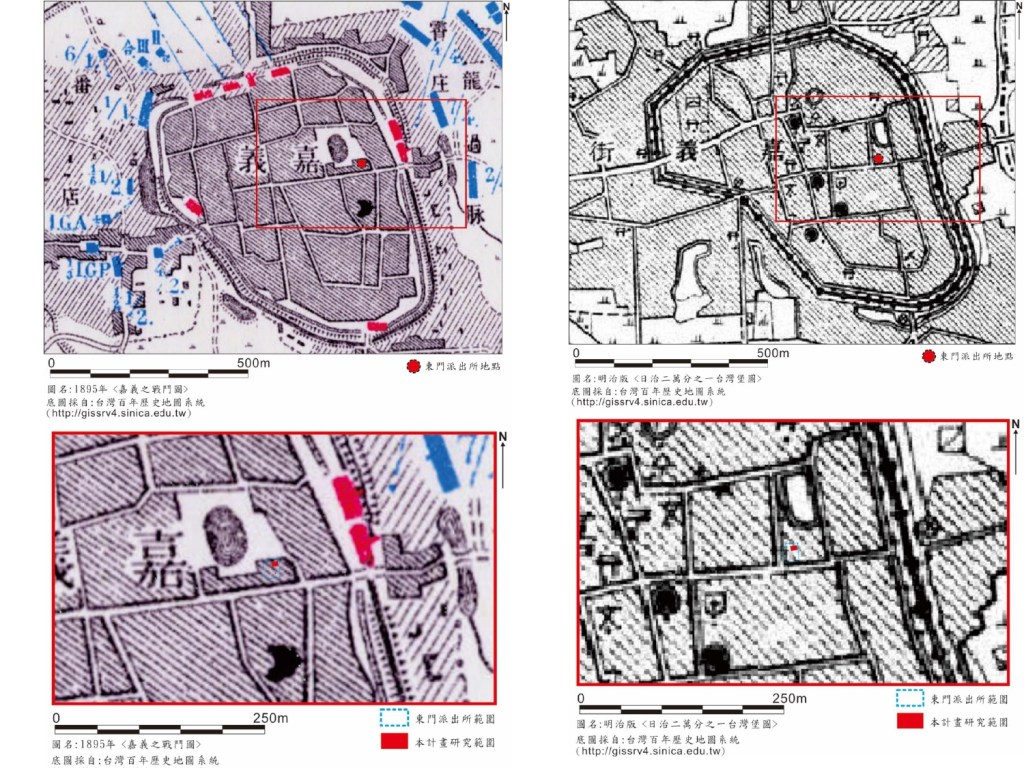 圖1:嘉義•番仔溝遺址(番仔交庄遺址)套繪明治28年(1895)的《嘉義之戰鬥圖》之「番仔交庄」位置圖
